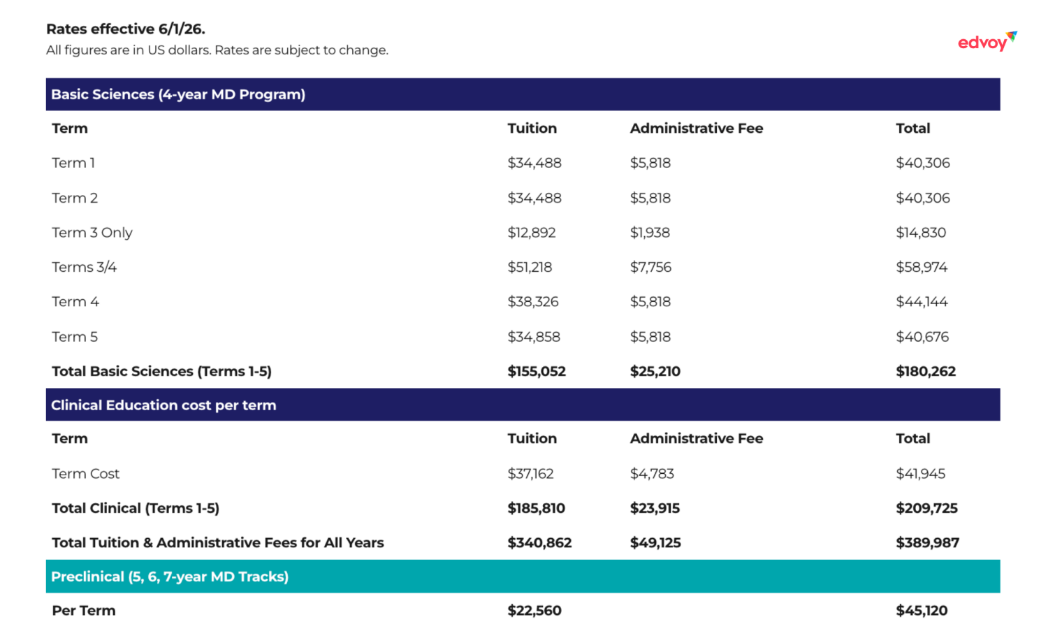 • The SGU Medical Scholar Award สำหรับนักเรียนที่มีผลการเรียนดี และมีศักยภาพในการเรียนแพทย์